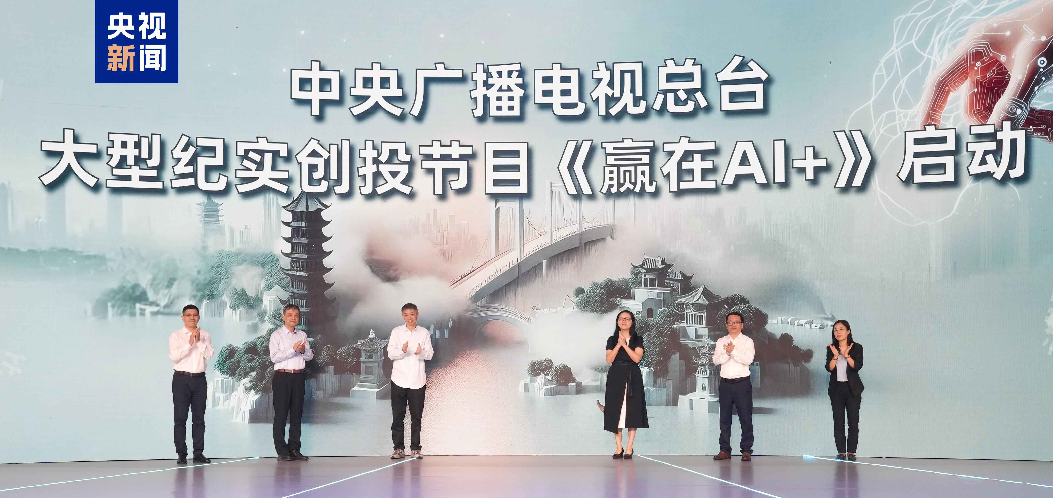 △王坚,地方电视总台视听新核心从任钱蔚,孙茂松,杭州市城西科创大走廊党群工做部部长黄承,浙江杭州将来科技委会党群工做部副调研员尹飞,阿里云智能集团副总裁、市场部总裁刘湘雯配合启动《赢正在AI+》。