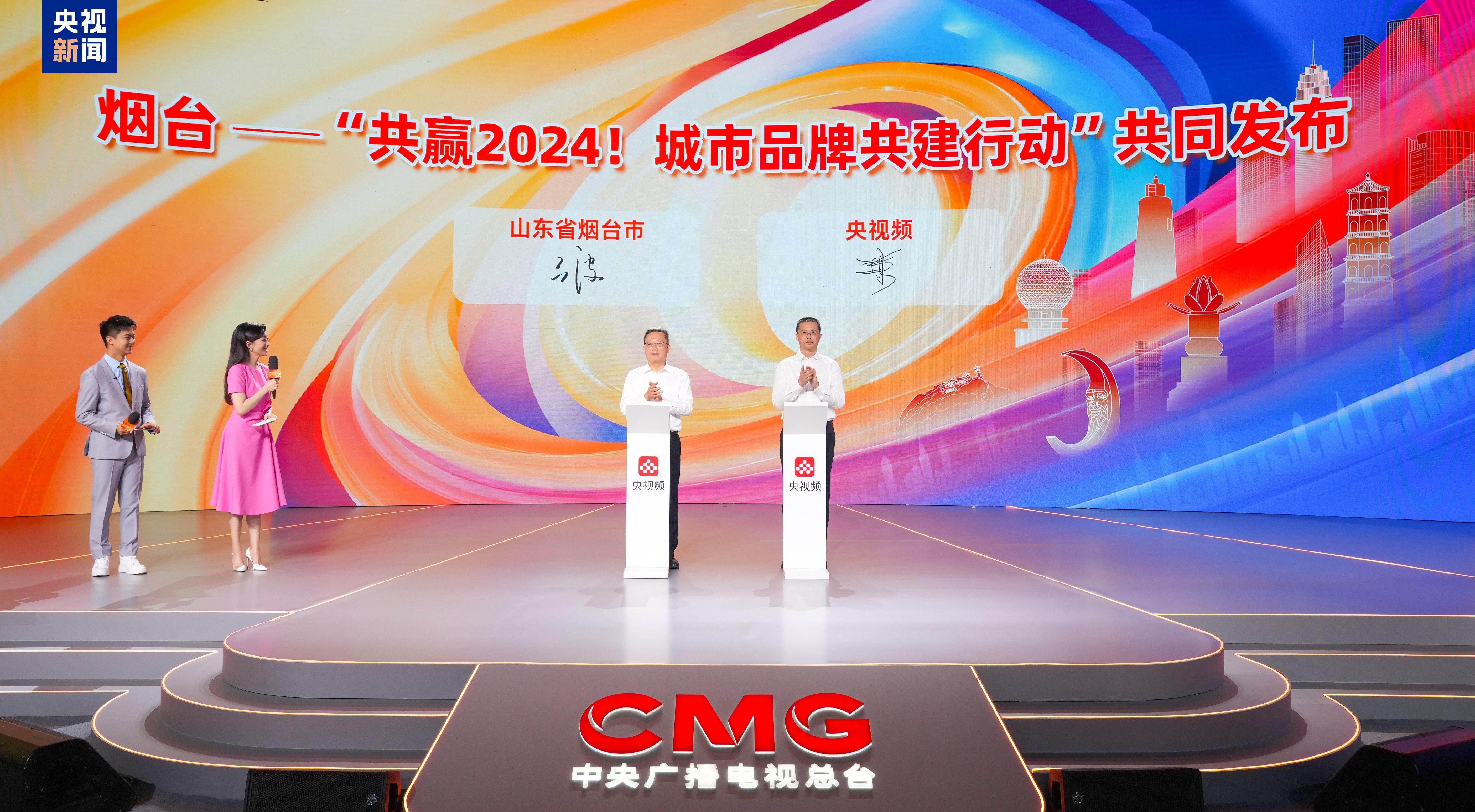 △烟台市委常委、宣传部部长吕波取收集无限公司董事长、央视频融成长无限公司总司理过彤配合发布烟台“共赢2024!城市品牌共建步履”?。