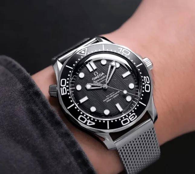 欧米茄本年将核心转向复古气概,新版海马300延续典范元素,同时注入现代巧思:海浪纹铝质表盘、钛金属表壳、米兰编织表带,配合营制出复古质感取佩带舒服性。
