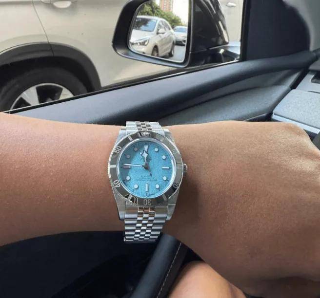 近年来帝舵几次推出抢手做品,逐步正在3万价位坐稳脚跟,帝舵的气概结壮耐制,设想上延续劳力士的典范言语,碧湾系列更是此中的明星。本年新推的冰蓝盘格式,以高颜值收成浩繁好评。