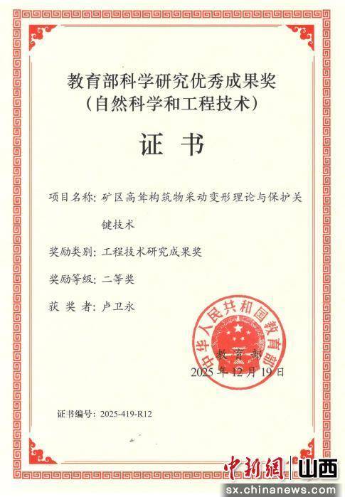 中新网山西旧事1月5日电 近日,吕梁学院资本取机械工程系副从任卢卫永副传授做为次要完参取完成的“矿区挺拔建立物采动变形理论取环节手艺”项目,荣获工程手艺研究二等,为山西高校博得了荣誉,显著提拔了山西省矿山平安学科正在全国同类学科中的影响力。