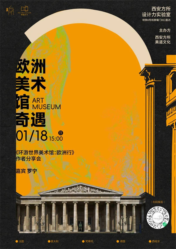罗宁的这本书《环逛世界美术馆:欧洲行》是关于欧洲11个国度40余座美术馆的艺术学问读物,多年来他本人多次亲历这些美术馆,并以此为第一手材料,连系本身对美术史的研究,用第一人称的纪行视角,概述了这些美术馆的汗青,建建气概,藏品概览以及它们的奇特之处,带读者一同体验欧罗巴的艺术精髓。本次分享会罗宁将会从画家取美术馆人的双注沉角,取大师畅谈欧洲美术馆的建建美学,艺术史脉络以及他的小我。从卢浮宫的古典灿烂到奥赛博物馆的印象派光影,抑或是蓬皮杜艺术核心的前锋尝试,让我们同罗宁一路领略欧洲艺术从文艺回复到现现代的壮阔图景。