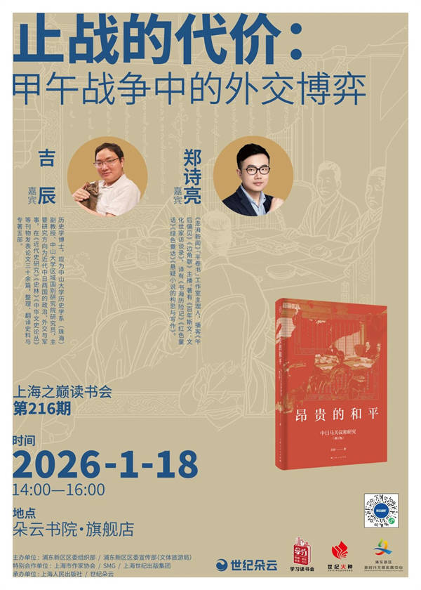 嘉宾:吉辰(中山大学汗青学系[珠海]副传授)、郑诗亮(《磅礴旧事》“半卷书”工做室从理人、播客从播)甲午和平是一场深刻改变近代中国命运的和平,而《马关公约》为这场和平画上了悲怆的句号。那么,这部公约是如何出笼,又是如何签定,如何核准,如何交换的?如许的成果能否无机会避免?《高贵的和平:中日马关议和研究》是国内首部全面研究马关议和的著做。1月18日,本书做者吉辰、《磅礴旧事》“半卷书”工做室从理人郑诗亮未来到朵云书院·旗舰店,聊聊甲午和平中的交际博弈。