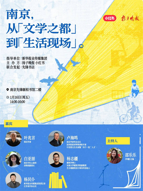 嘉宾:叶兆言(做家)、卢海鸣(南京出书传媒集团原总司理、南京出书社原社长)、白亚丽(南京市红山丛林动物园副园长)、疆(东南大学建建学院副传授)、杨平易近仆(记者)做为来自中国的“世界文学之都”,南京的光阴里流淌着千年文脉,而它的每一次呼吸,饱含着一点一滴、热气腾腾的贩子糊口。1月16日,南京出名做家叶兆言、南京学研究会会长卢海鸣、南京市红山丛林动物园副园长白亚丽、东南大学建建学院副传授疆和新华报业传媒集团资深记者杨平易近仆未来到前锋颐和书馆,取担任掌管人的《窄播》从编邵乐乐一路,率领读者穿行于文学、汗青、天然、建建取街巷的故事之间,探索南京为何能如斯奇特——它既承载着厚沉的过去,又始一生长正在活泼新鲜的当下。