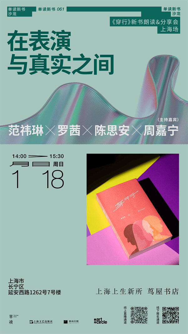 舞台的魔法正在于,它看似为糊口和戏剧划出一条泾渭分明的分界线,但演员的演绎注释,又让不雅众沉浸正在莫辨的世界里。正如《穿行》中写到的梨园子弟庄一尘所言,正在台上,“年代不主要,种族不主要,现正在连性别也不主要了,但我们投放正在表演上的一切,就是我们这小我啊!”1月18日,我们邀请《穿行》做者、戏剧编剧、导演陈思安,取演员范祎琳、导演罗茜、做家周嘉宁来到上海上生新所茑屋书店,正在朗读演绎新书片段后,她们会从本人正在剧场和糊口中的亲身经验谈起,聊聊表演取实正在之间的距离。美少年、音乐家、“诗中有画、画中有诗”这些固化标签之中。细解王维生平、时代、亲交、感情、教、音乐、绘画、诗艺,才能还原王维的世界,试图感触感染他对生命的安放,读懂他的疾苦取无法,以及由此而生发的安然平静。1月18日,《王维十五日谈》做者、青年诗人李让眉,诗人、胡桑,将配合做客上海古籍书店,取读者一路聊聊王维取现代诗歌和现代糊口的关系,阅读王维之于我们现代人的意义。